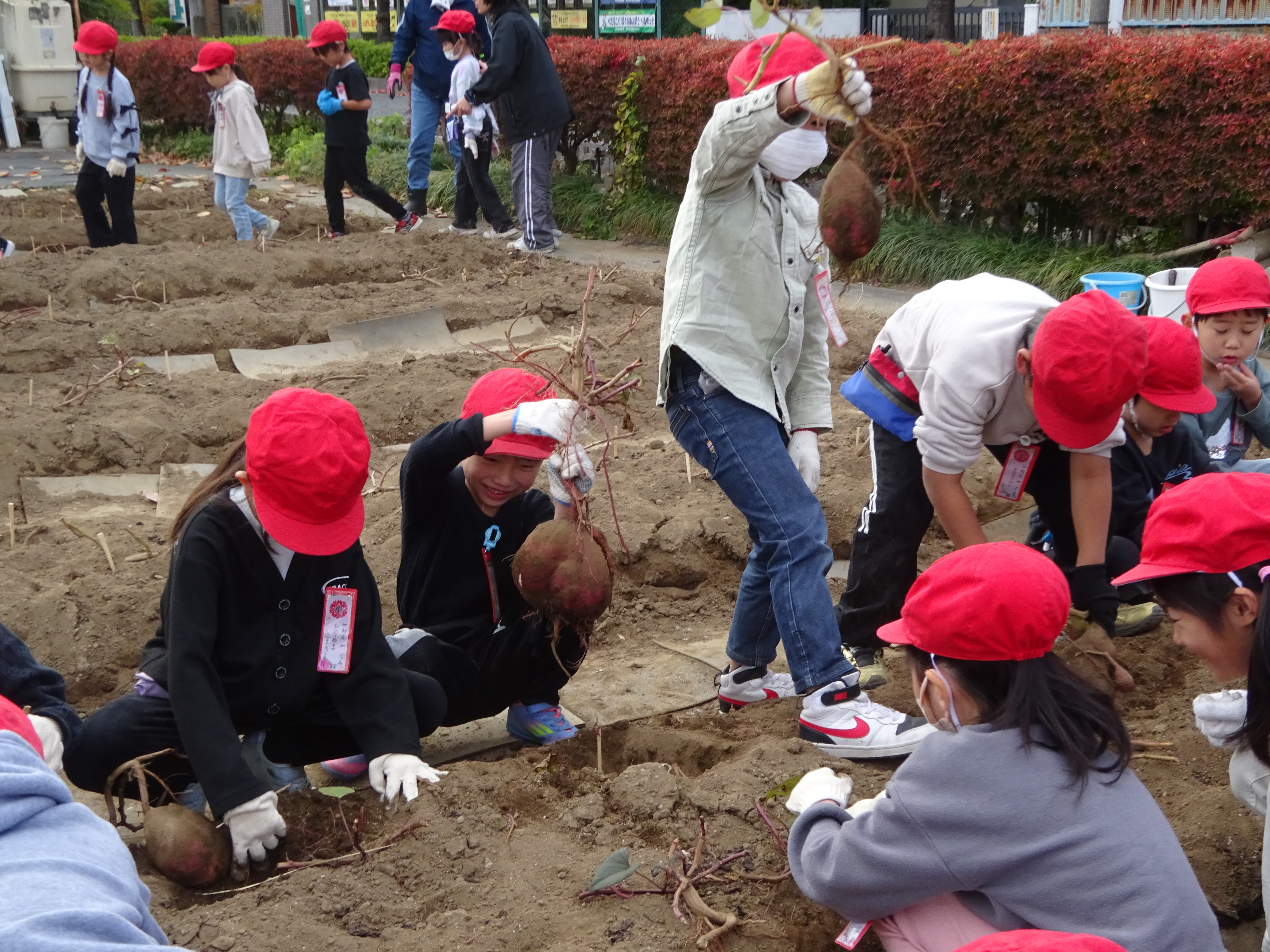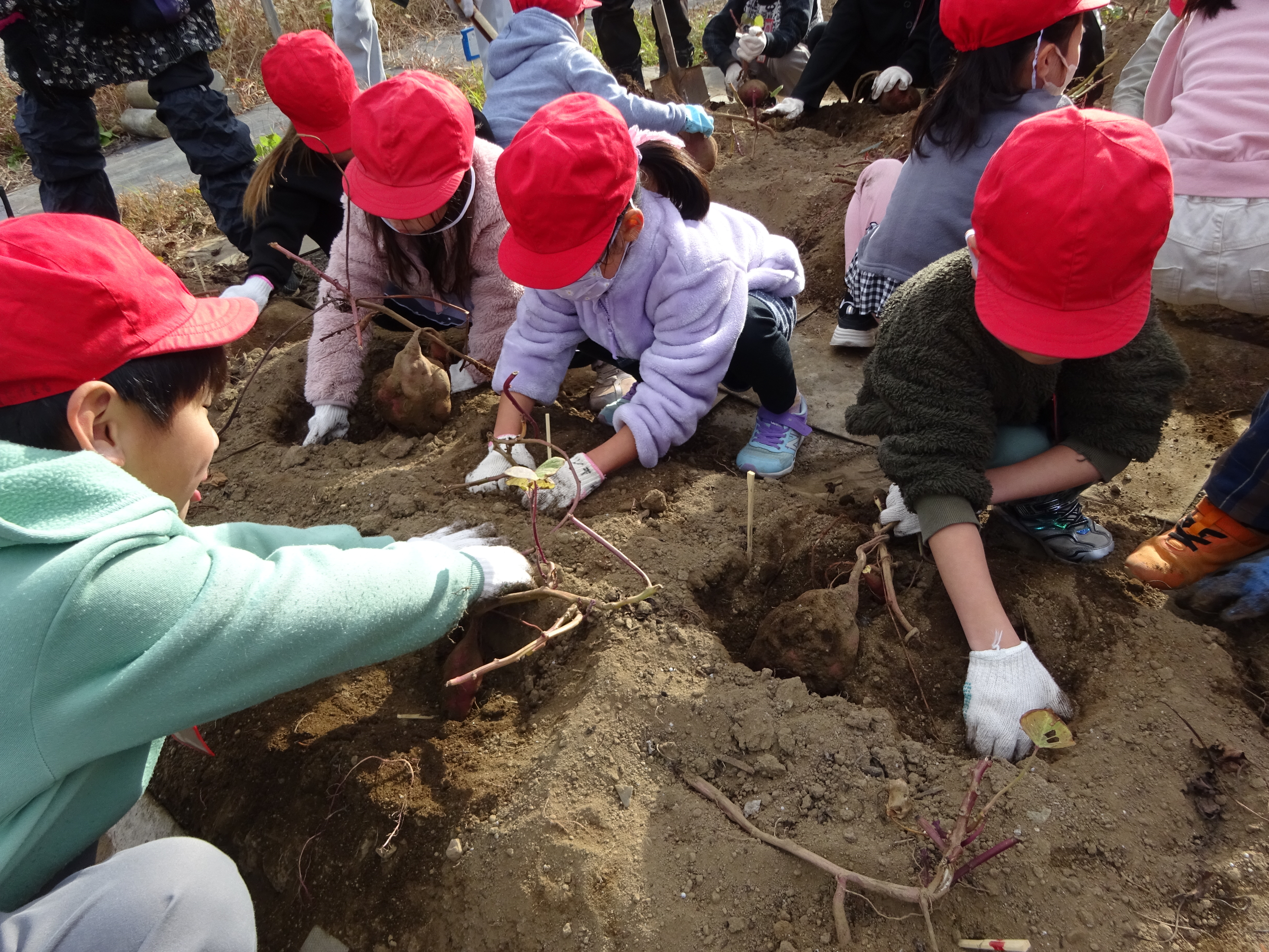 とても楽しそうに掘っていた1年生。家に持って帰って食べるのが待ち遠しいですね。