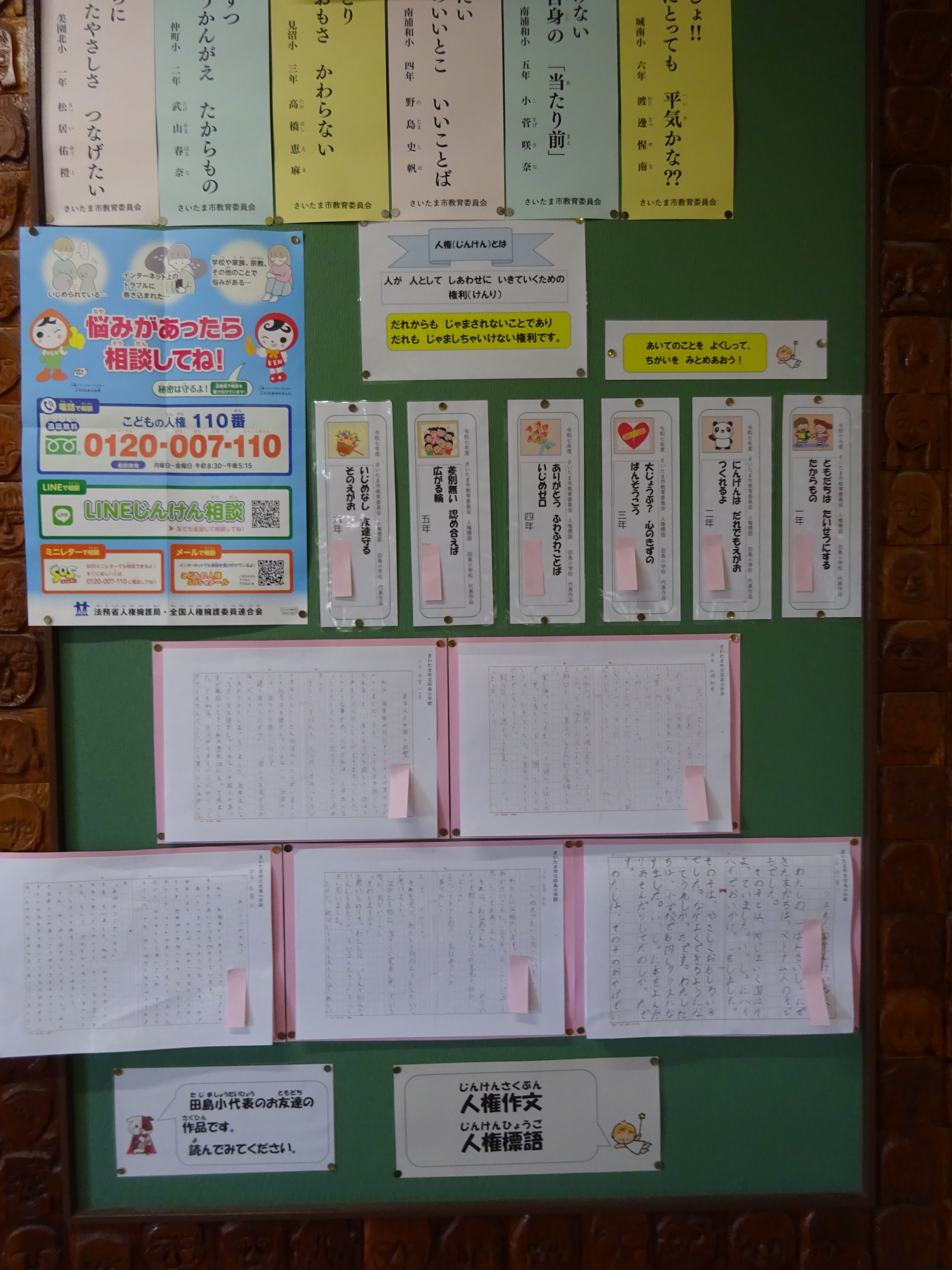 本日は、学年代表になった「人権標語」の紹介をビデオ放送で行いました。明日は、代表児童の「人権作文」の紹介をします。2階の放送室横の掲示板に人権教育コーナーに掲示がしてあります。保護者や地域の方も、来校された際には、ぜひ御覧ください。