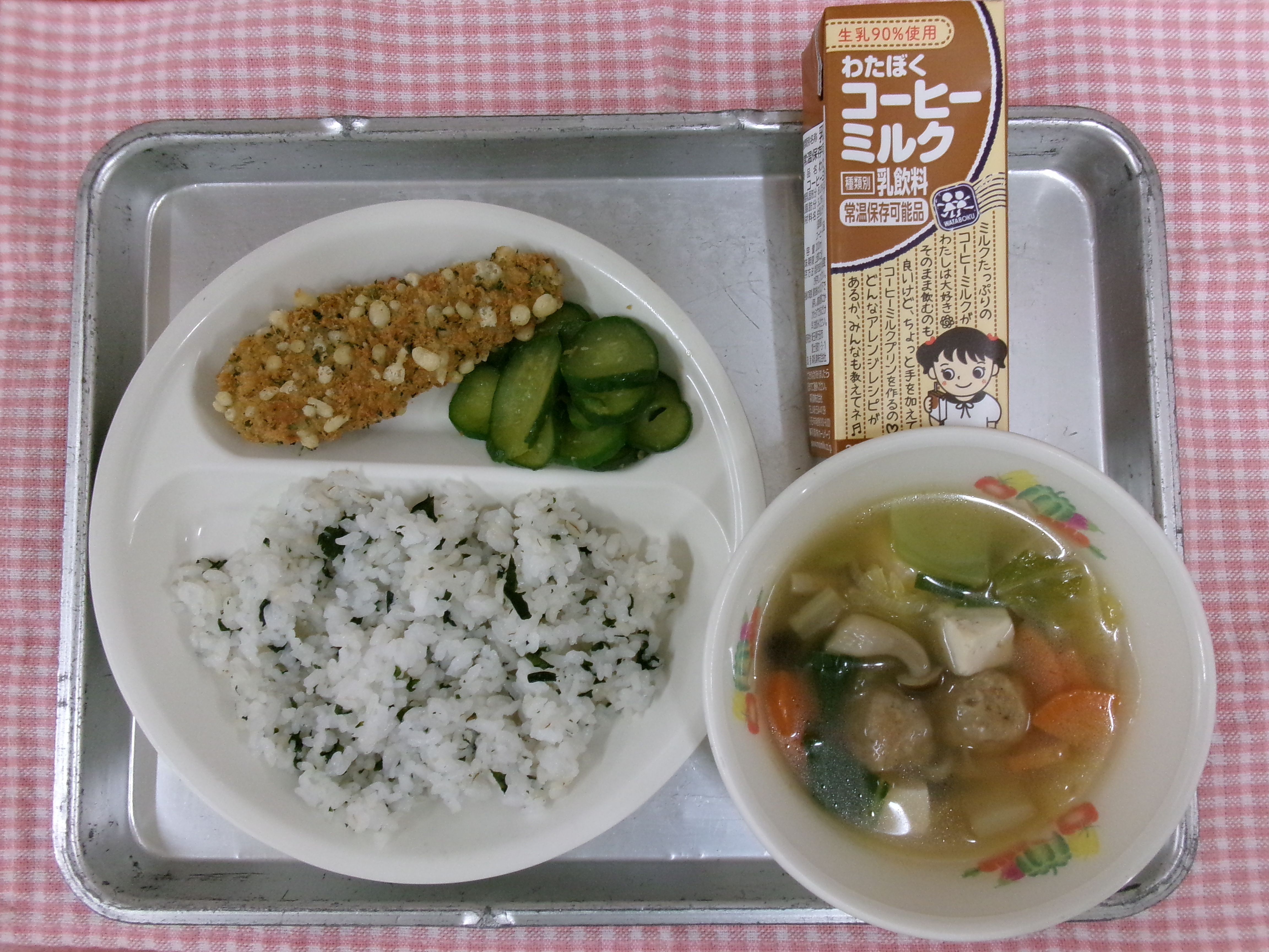 ※6年生が家庭科で栄養バランスや旬の食材、郷土料理等を取り入れながら給食の献立を考えました。今日は6年2組の児童が立てた献立をもとに作った給食です。